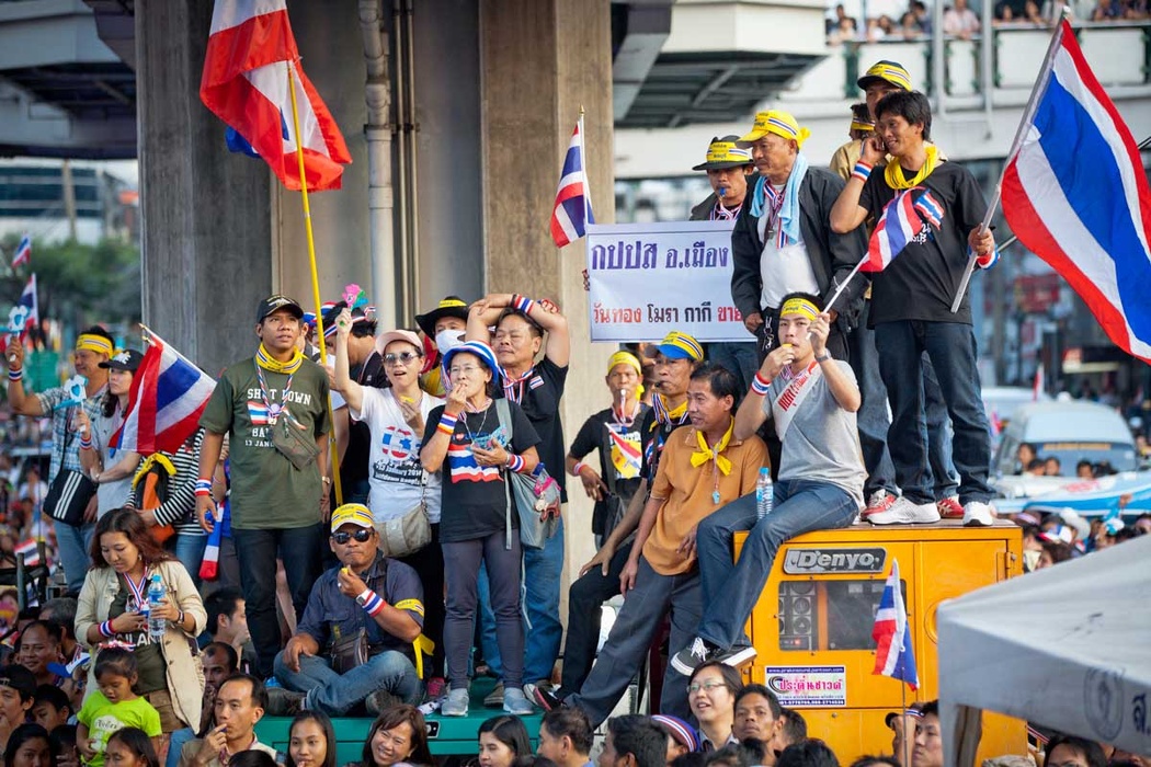 Anti-government PRDC protestors rally at Asoke intersection in Bangkok on Jan. 13, 2014. Photo: Zanyasan Tanantpapat