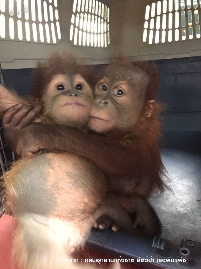 The orangutans, a boy and a girl, were healthy, according to the officers. They are being transferred to a government-run animal breeding center in Ratchaburi to be cared for, reported Thai PBS.