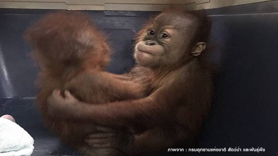The orangutans, a boy and a girl, were healthy, according to the officers. They are being transferred to a government-run animal breeding center in Ratchaburi to be cared for, reported Thai PBS.