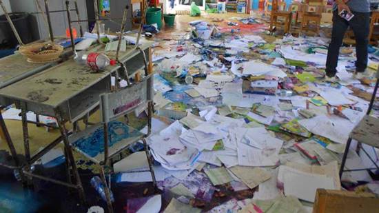 The incident happened at a classroom of Prathom 6 students, at Baan Nong Muang Nong Tae School. The teachers returned to find their classroom completely wrecked.