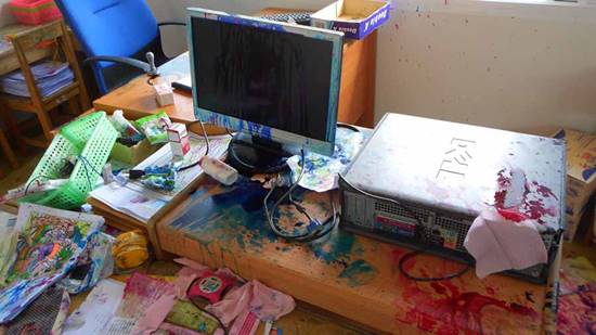 See the paint on the floor? Police said the little troublemakers took out the printer’s cartridge and smeared the ink on the floor and furniture.
