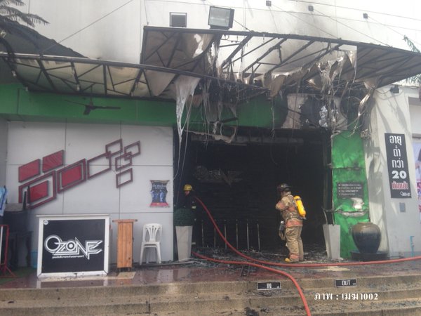 The fire started at Tawan Daeng Sard Saeng Duean restaurant (formerly Ozone pub), located on the first floor of a two-story building on Ratburana’s Suksawad Road. The gym, PG Fitness Healthy and Relax Club, is above the pub on the second floor.