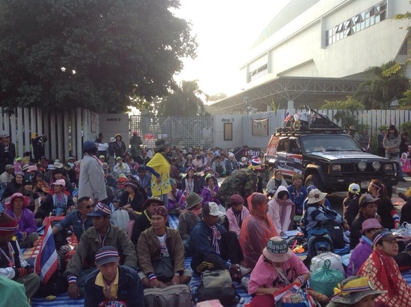 Supporters of the People’s Democratic Reform Committee have blocked access to the stadium since Sunday evening to prevent the registration of party candidates for the Feb. 2 election.