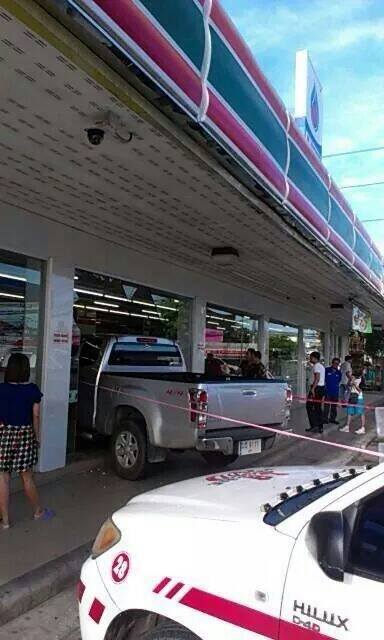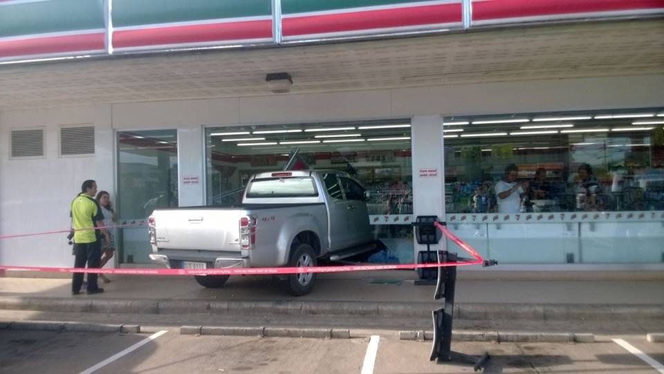 A woman rammed her truck into a 7-Eleven this morning, plowing through an ATM machine and slightly injuring one person who didn’t seem to mind all that much.