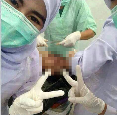 The photo, which was taken in the hospital’s intensive-care unit, shows two of the nurses brandishing a “victory” or peace sign with their fingers. After the photo was circulated on social media, the nurses’ action came under for heavy public criticism for being inappropriate, insensitive and unethical.