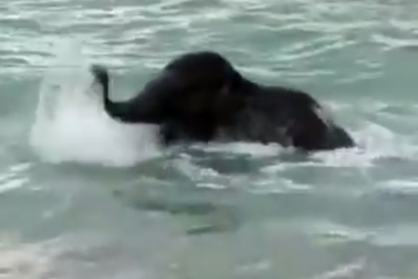 A recently uploaded YouTube video making the online rounds purports to show a beautiful baby elephant going bonkers upon seeing the sea for the first time.