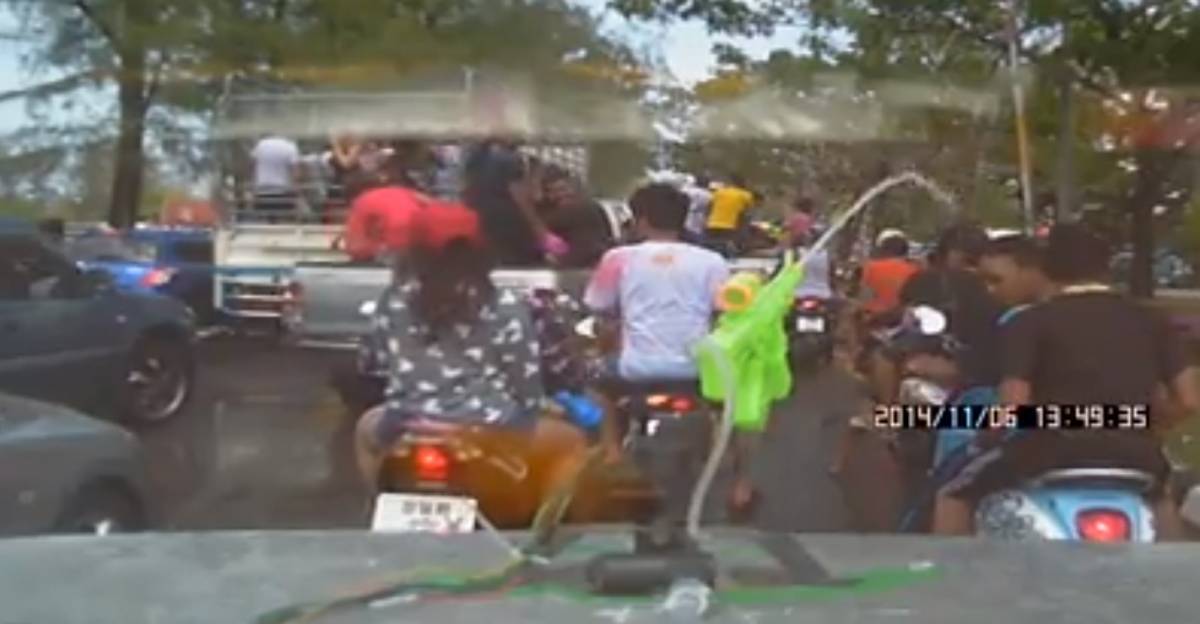 Indeed a Facebook video of this fearsome weaponry has been making the rounds and striking fear in the hearts of Thai New Year revelers.