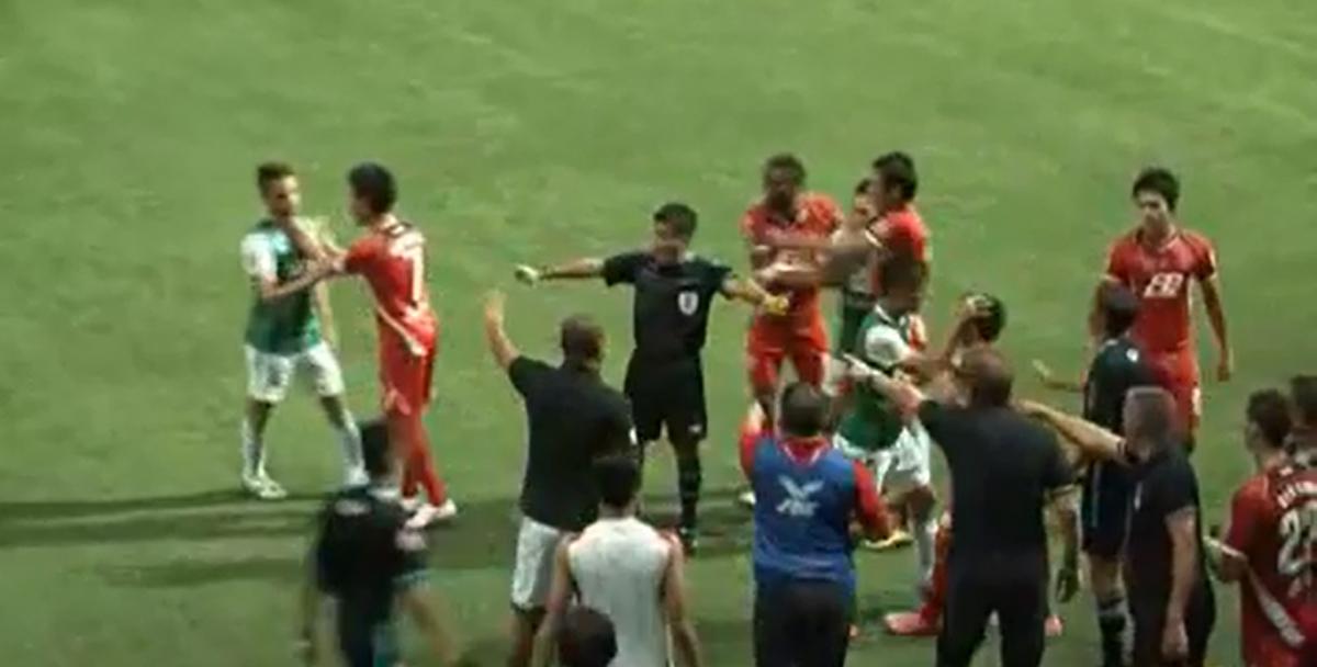 In the video, BEC Tero Sasana player Messi J looses the ball and his balance after what appears to be a light tackle from by Bangkok Glass player Leesaw. After the ref calls a foul and awards BEC Tero a free kick, an obviously frustrated and angry Leesaw grabs Messi J, hoists him up, drags his limp body a few feet and then dumps him on the pitch.