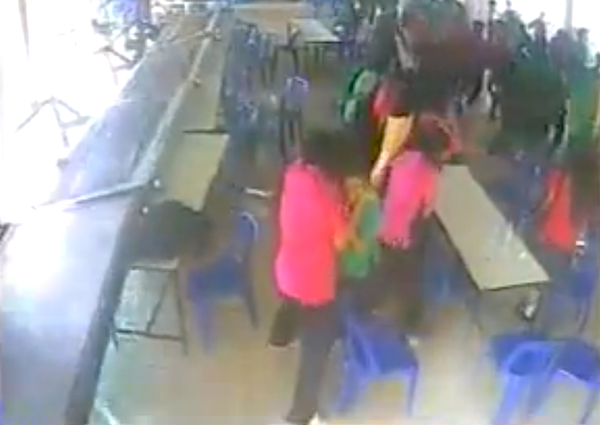 The incident happened at 3:20pm while many students were still in class. The school’s close–circuit cameras captured the horrific maelstrom. In the video many are seen holding hands and running from behind a pillar for safety.