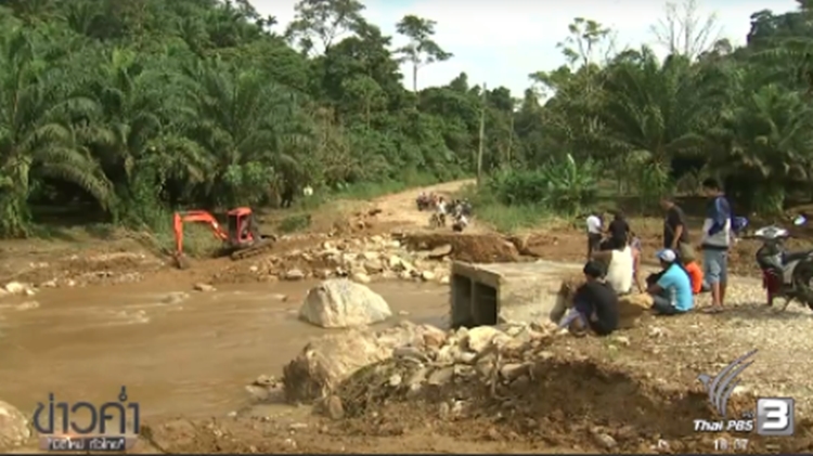 One small town called Ban Na Khao Lang was completely demolished by the runoff waters from the receding flood and landslides from nearby Khao Lang Mountain.