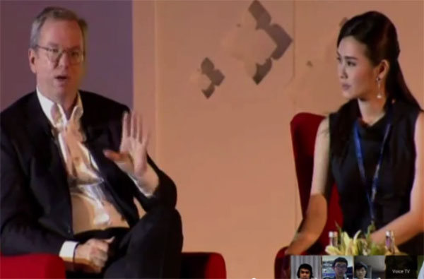 Google Executive Chairman Eric Schmidt participated in an hourlong discussion hosted by Voice TV earlier this month as part of its Big Tent Thailand series. The network has since made the entire talk available online: