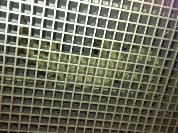This morning, lawmakers, who came to work at the Parliament House of Thailand, were startled to see a water monitor lizard crawling in an air duct on the building’s ceiling.