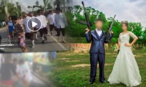 Thanet Inwong, who was just 36, was shot dead at his Ban Huay Khai Nao home as the procession, shooting guns into the air with the groom, passed by on their way to the bride’s home.