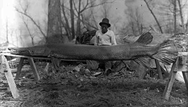 The alligator gar is the largest exclusively fresh water fish native to North America. In 1910 a three-meter specimen was caught in a lake in Mississippi, as seen in the photo above.