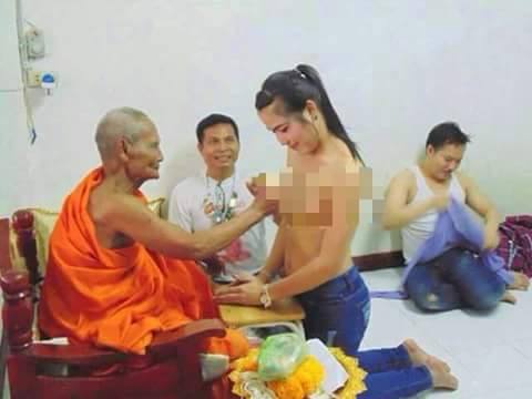 A photo of a monk who appears to be violating one of the biggest monk rules spread online this afternoon after it was published by anti-superstition group “Fuck Ghost.”