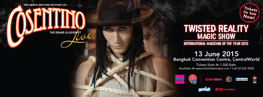 Prepare to have your mind bent, world famous magician Cosenza Tino (Cosentino) is making his way to Bangkok to freak us all out in a wickedly entertaining way. On June 13, make your way to the Bangkok Convention Centre at CentralWorld to catch Cosentino’s new show “Twisted Reality.”