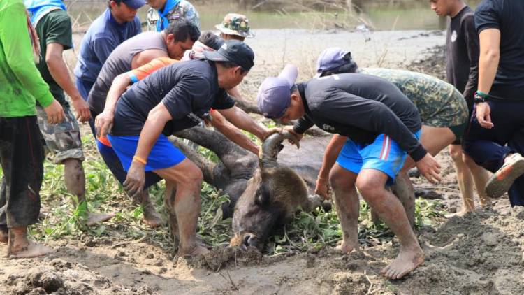 Mali died on Saturday morning, shortly after she was rescued from a mud pit in the Hala Bala Forest, in the southern province of Yala. The gaur appeared skinny and was believed to have been stuck in the bog for nearly a week.