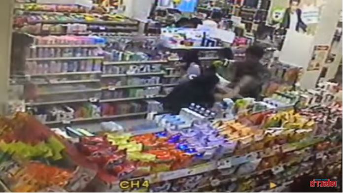 Surveillance footage from the scene showed the woman, Chalinthorn Wattanasap, 35, browsing through the shelves of a 7-Eleven store with an umbrella in her hand when a man with a messenger bag slung over his shoulder walked up to her from behind.