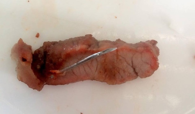 The young woman bought the grilled pork from an Isaan food stall near her home, but the vendor said she had know idea how the needle got there.