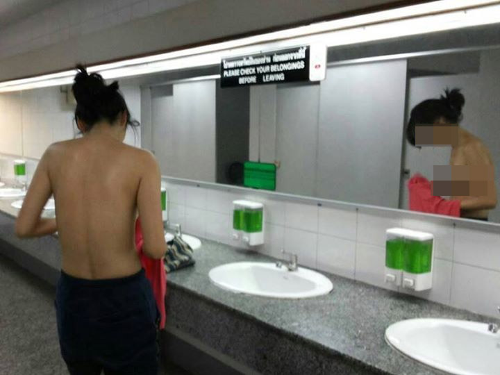 Facebook page CSI LA published a photo of one of many naked Chinese on Friday who felt comfortable changing in the airport’s ladies room without going into a stall, making the Thai women who used the bathroom feel awkward and prompting the day’s outburst of sinophobia.