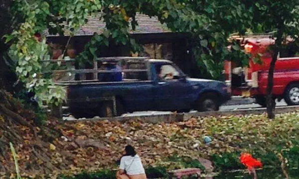 Posted to an anti-Chinese Facebook group, the image – purportedly taken Thursday – does indeed show what appears to be an old city canal of Chiang Mai. And forensic study confirms it really does show a rear-view of someone with their dumper fully submerged in the canal water.