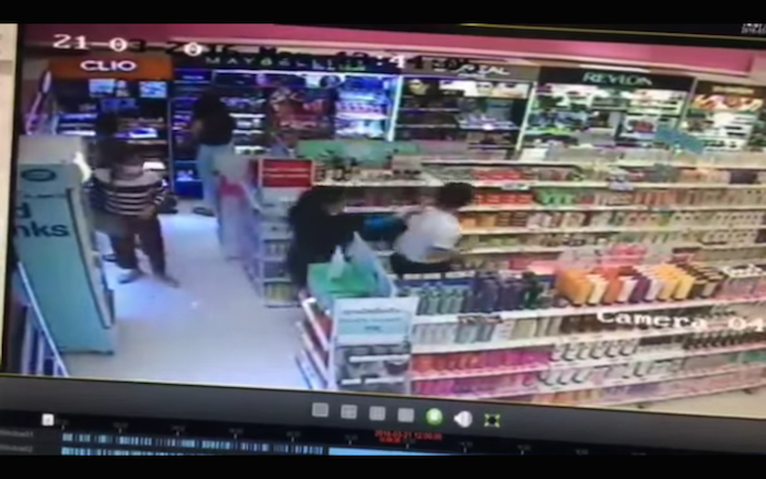 Wannakorn Krodkaew, 27, was seen repeatedly slashing the shop assistant Looknam Kaipetch, 19, with a pair of scissors at Boots in Central Plaza Grand Rama 9 on Monday afternoon, Khaosod English reported.