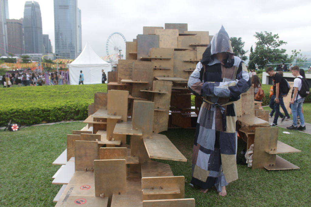 Designed by local artist Jason Demski, the art installation in the middle of the festival site was made up of bits of abandoned wood found in Hong Kong, from shelves to doors with the hinges still attached. The interactive element was that people could go in and write down any sordid sins or confessions, which ranged from “I love Clockenflap” to “I still read real books”.