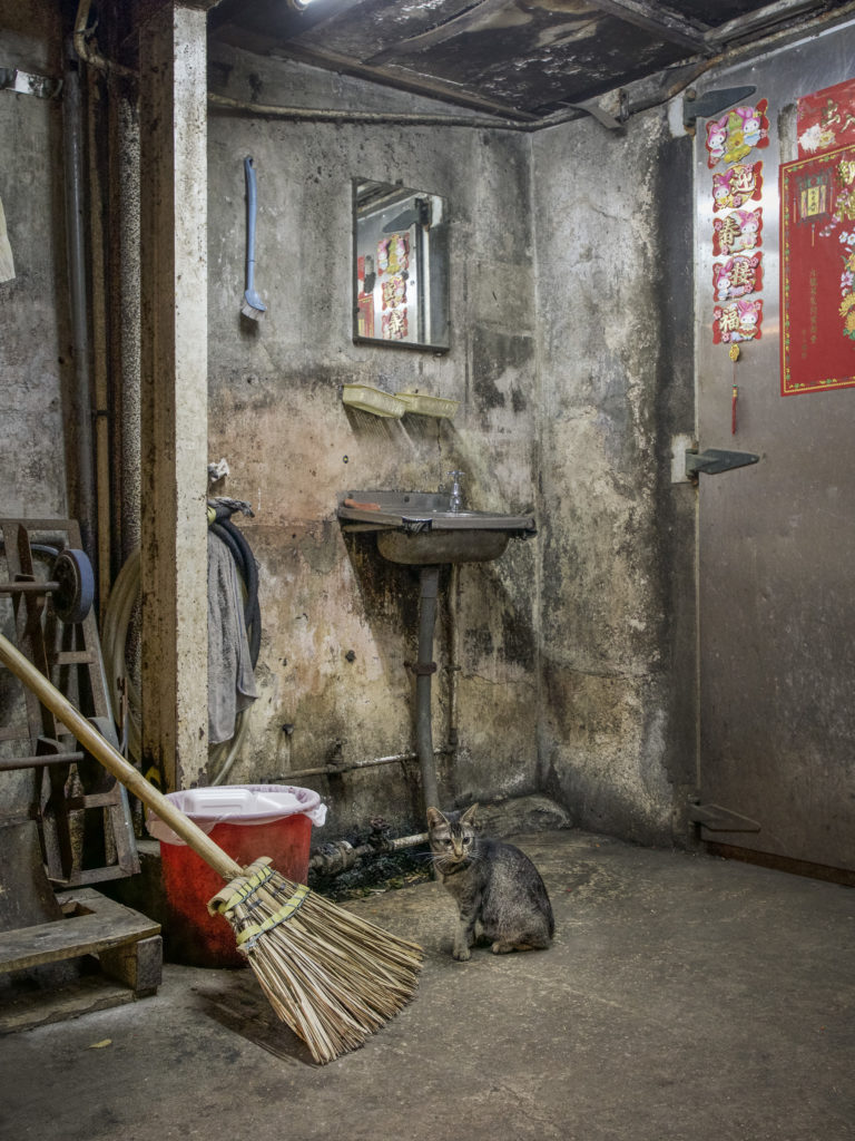 “It’s an interesting thing because also the dog has a function, it’s a guard dog very often in the garage because they have valuable stuff, and it’s a very different atmosphere from the shops and the markets that I photographed cats in. But it’s equally Hong Kong.”