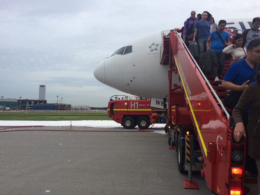 A photo taken by Jeremy Leung as he was evacuated from the plane along with his fellow passengers.