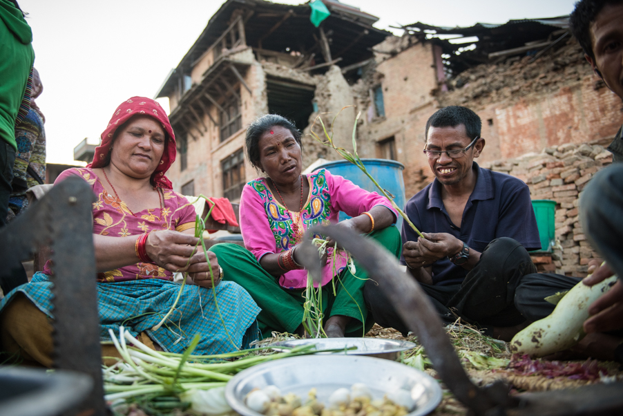 A group of people cooking outside in the village of Bungamati on May 4, 2015.