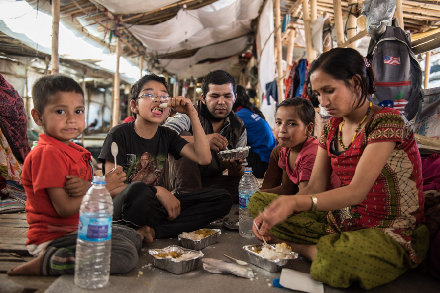 Families seeking shelter in what used to be market stalls on May 3, 2015.