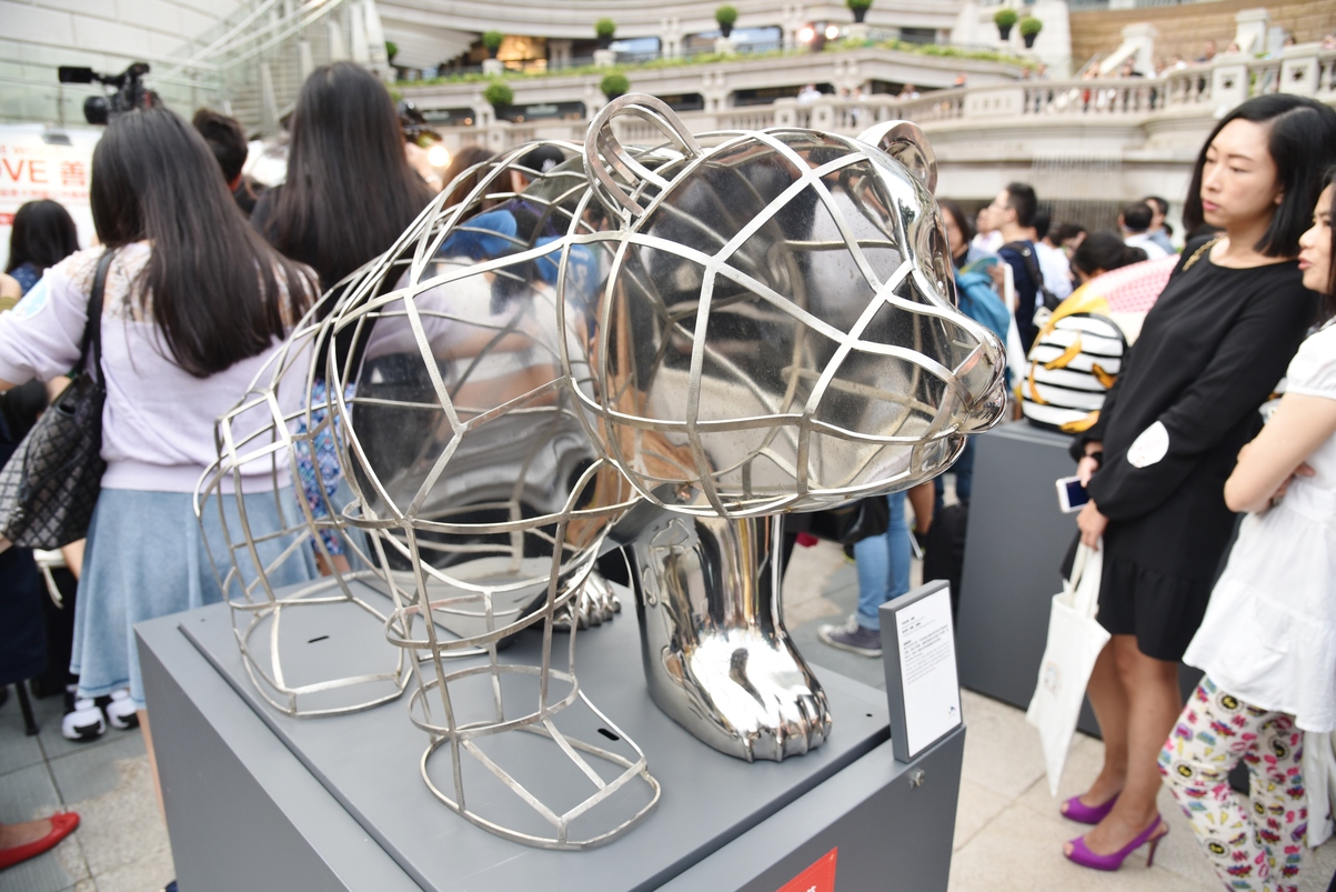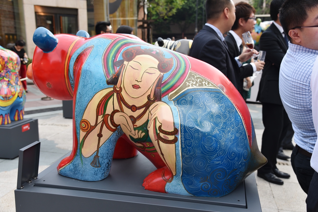 The Heart Panda exhibition was created to promote public art while raising money to help children suffering from amblyopia (lazy eye) and cleft lips in China. Over 60 giant panda figures were made in various sizes and poses, and then decorated by students, artists and celebrities across China.