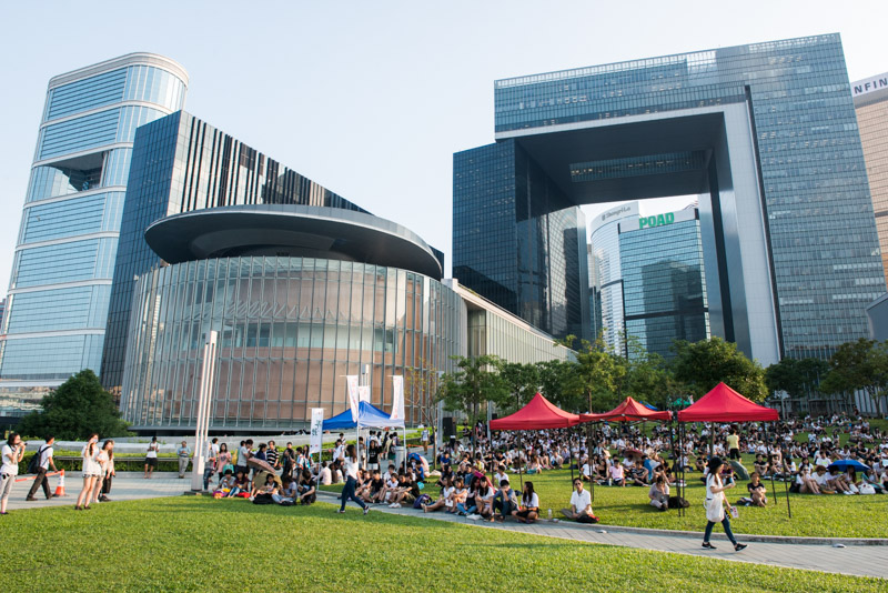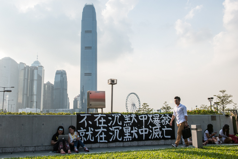 Students held the second day of the teach-in in Tamar Park, at the foot of the Central Government Complex and the LegCo Complex