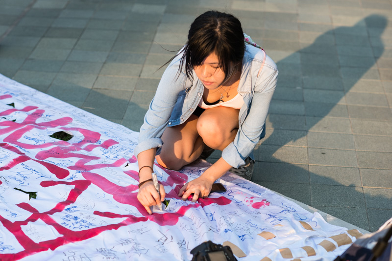 The IFC and the new ferris wheel provide a picturesque background for the teach-in. The black banner says “if you don’t burst out of the silence then you will perish in the silence”.