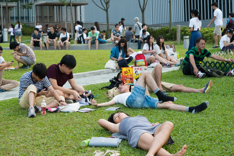 Though the teach-in has been highly organised, with glossy pamphlets, public lecture schedules, speakers, and tents, the students took the opportunity to kick off their shoes and enjoy the grassy lawn.