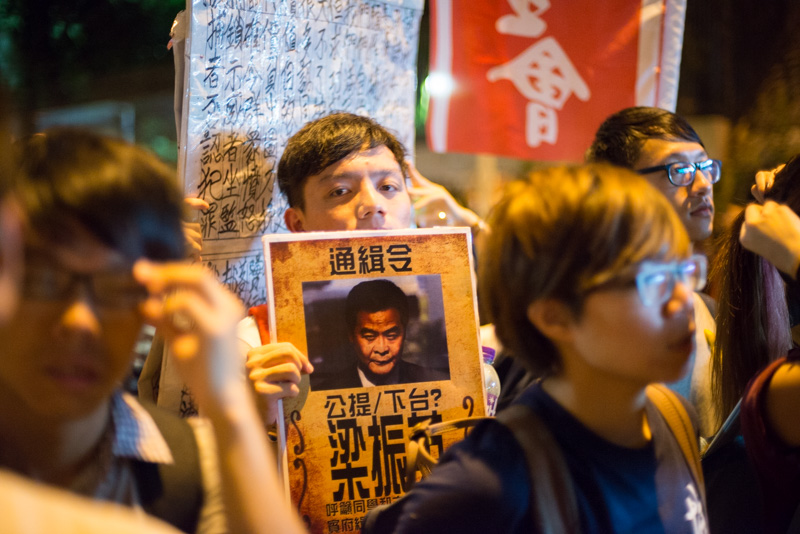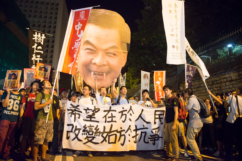 Last night students marched from Tamar Park, Admiralty to the Lower Albert Road entrance of the chief executive’s official residence, the Government House. Student leaders, who did not apply for police authorization, estimate that approximately 4000 people joined the march, though AFP put the number at around 2000 and the SCMP counted 1200 at the start.
