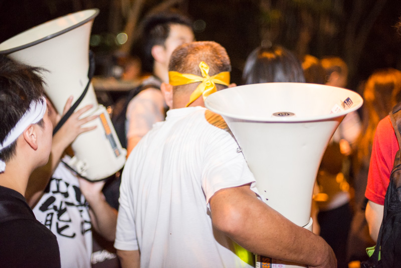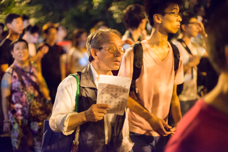 This elderly man helped to carry the megaphones that blared the voices of the student leaders. Being a young man, and having been yelling all night, one leader’s voice kept cracking, causing the crowd to giggle and erupt into cheers of support.
