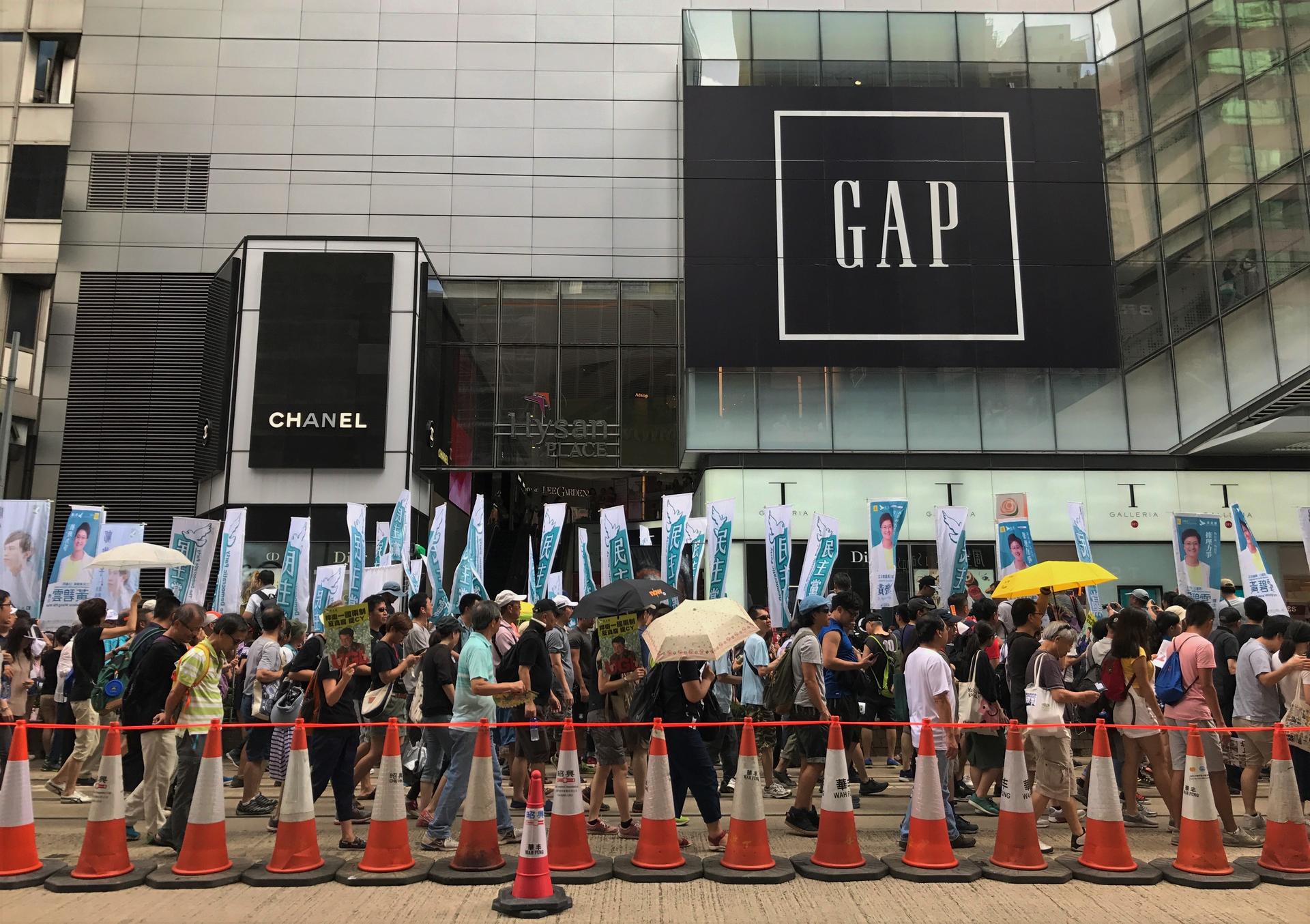 As the protesters made their way through Causeway Bay, prominent pro-democracy figures like veteran lawmakers and outspoken activists addressed the crowd from their party’s booths and called for donations.