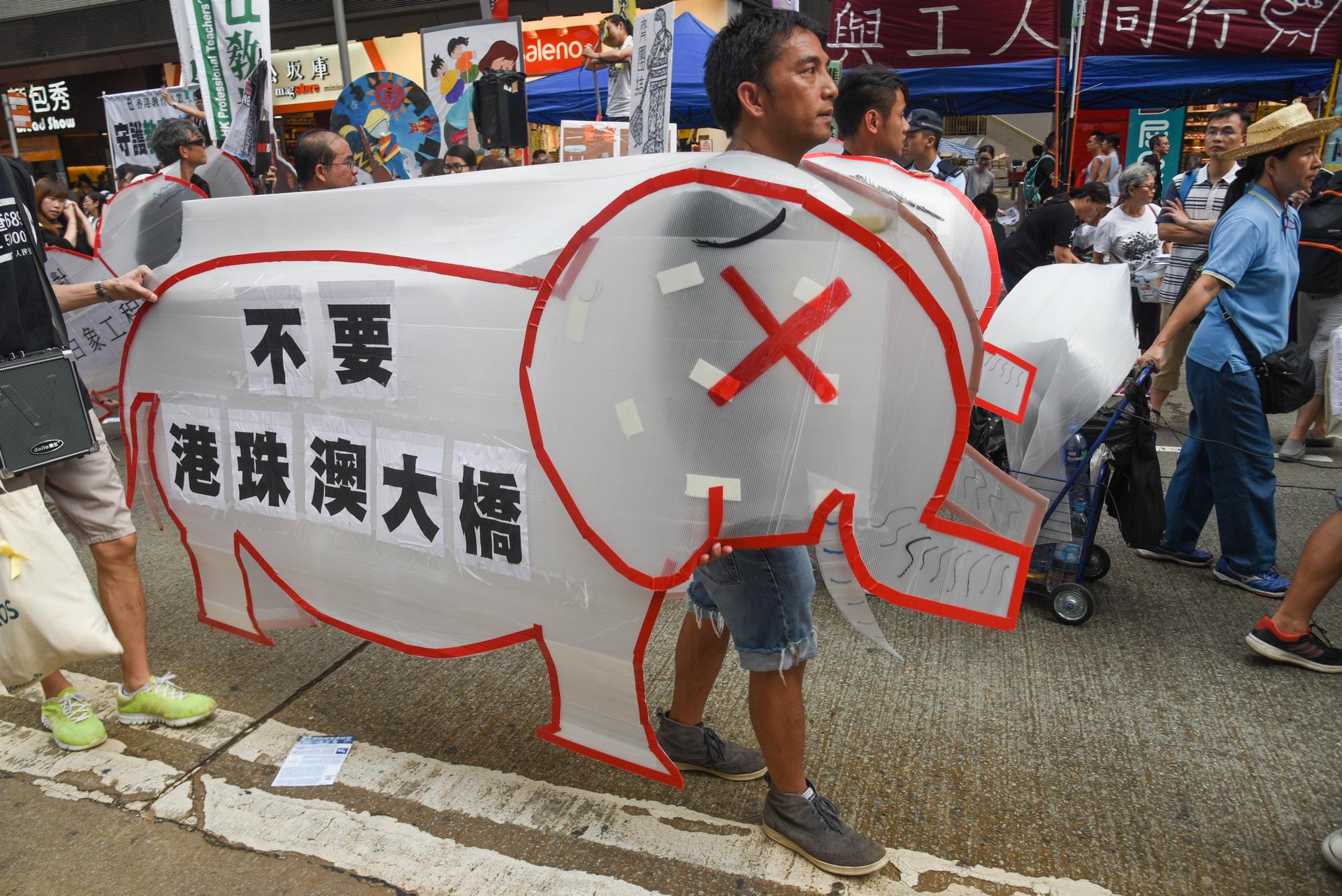 As usual, some displays were more creative and tongue-in-cheek than others, with one particularly memorable group walking through the city in white elephant costumes to protest expensive “white elephant” projects. (And don’t even get us started on the CY punching bag and yellow umbrella-toting Xi cutout.)