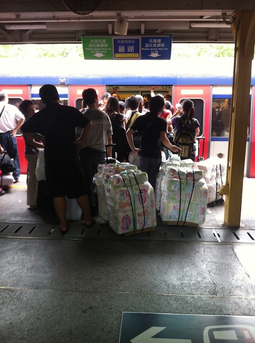 Reporters found that grey market organisations from the mainland are transporting these diapers by the truckload to a money exchange store in Sheung Shui, where they are smuggled across the border where they can command four times the retail price.