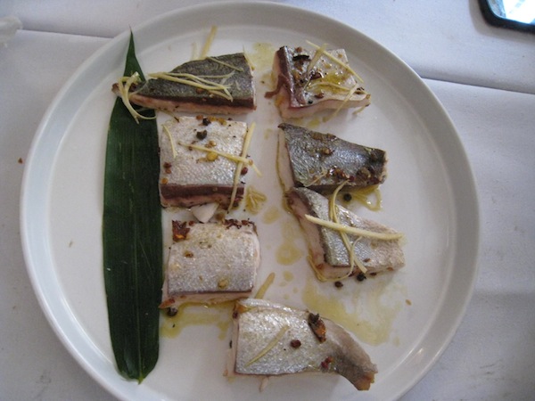 Part of the lunch’s mission was to put a spotlight back on ingredients and dishes taken for granted forever in a town saturated with Cantonese restaurants. Presenting fare such as sweet potato leaves in a showcase presentation made its slight bitterness and texture a new revelation, served with very sweet beets and raw octopus.
