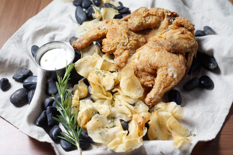 Chef Austin Fry’s of Boomshack has gone for the bite-sized route, with Fried Chicken Morsels with pickled brined fried basil, kale chips, kewpie tartar sauce and pickled mustard seeds. A half serving will set you back HKD68, while a full serving costs a decent HKD118.