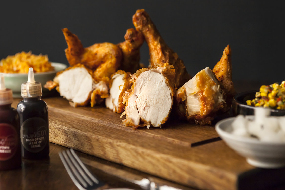 Chef Tim Lau from Moonshine and the Po’ Boys is serving a traditional buttermilk fried chicken with a blend of Cajun spices and herbs, which rings in at HKD100 for a half chicken, or HKD180 for the full bird.