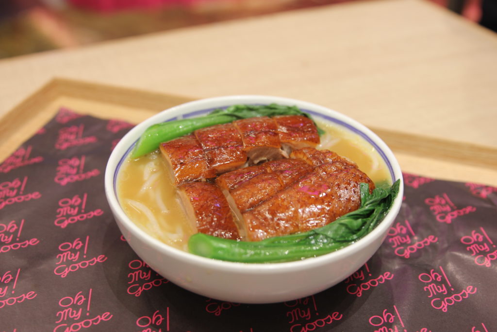 Oh My Goose! certainly has that contemporary branding thing going on — the hot pink, neon light fixture bearing its name and goose logo shines brightly among the stalls that line Mongkok’s Langham Place Food Court. It’s hard to miss.