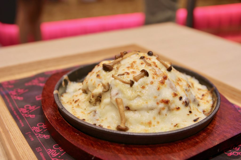 The baked BBQ pork and goose with “10x cheese” (HK$48), which comes served on a sizzling plate so that the cheese is still bubbling and hissing when it gets to your table — well, maybe this makes us traditionalists, but we just don’t feel cheese like this is really a nice match for fried rice or BBQ pork.
