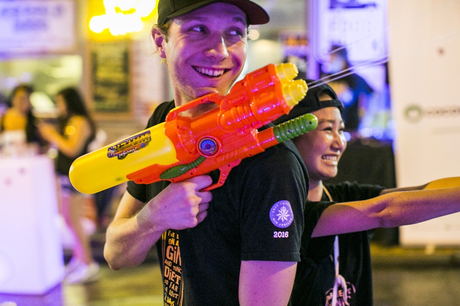 As the street got a bit more crowded, some of the Proof & Co. and East Imperial guys took it upon themselves to cool everyone down… with a gin and tonic water gun fight! (Okay, we may have joined in.)