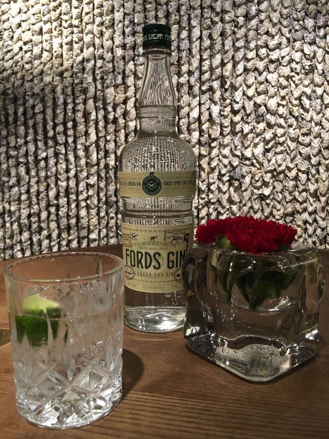 We sipped on some delightfully citrusy Ford’s gin in luxury British furniture shop Timothy Oulton… which, conveniently enough, comes with its own wall of oyster shells: