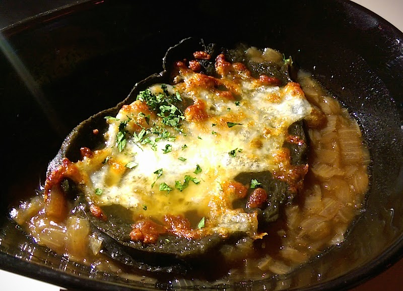 There was little on the menu to really tempt us to the dark side. The French Onion Soup (HKD68) was a bit bland, with melted cheese (not Gruyère, I don’t think) on top of a black piece of spongy bread. The most interesting aspect of the soup was that the onions were diced so small they almost resembled a risotto consistency. This, I kind of liked.