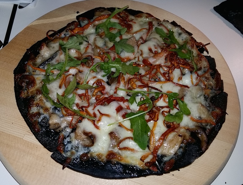 The menu offers an ordinary range of snacks, like pasta, pizza and burgers – and not everything is either squid ink-flavoured or charcoal-based. In other words, there is no culinary reason for the ebony food. That is not the only random and inconsistent thing about the place though.