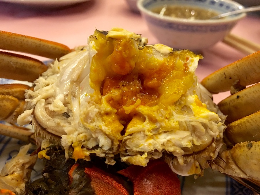 Finally, the crabs arrived bright red and still steaming. The staff carefully cracked them open, reminding us to eat the hot orange roe first before it cooled.